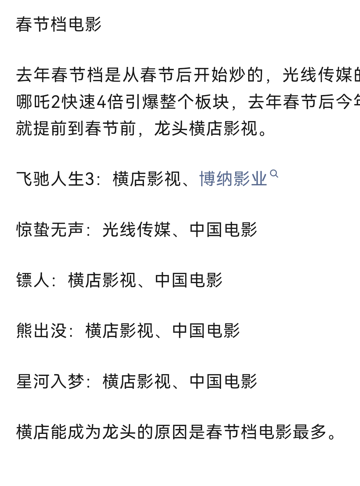去年光线传媒4倍,自己想吧,每年过年电影必炒,横店流通盘才20多亿。