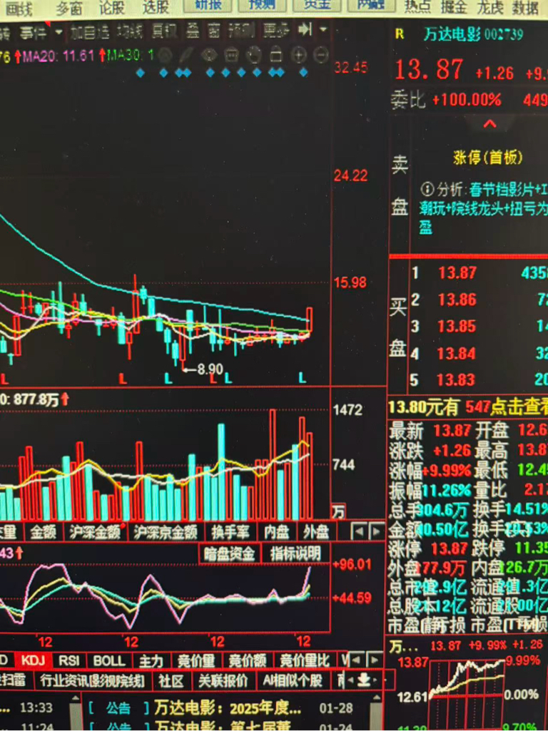 万达电影这月线圆弧底太漂亮了