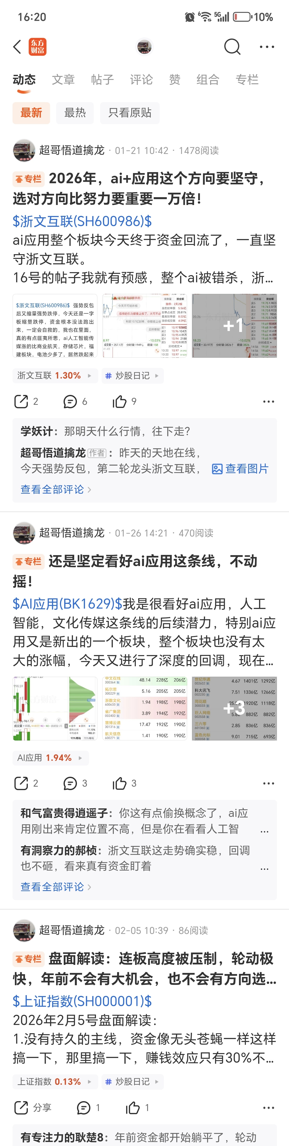 1月份的帖子,包括2月4号的帖子对ai这条主线的判断,还有对横店影视的说法挺准确