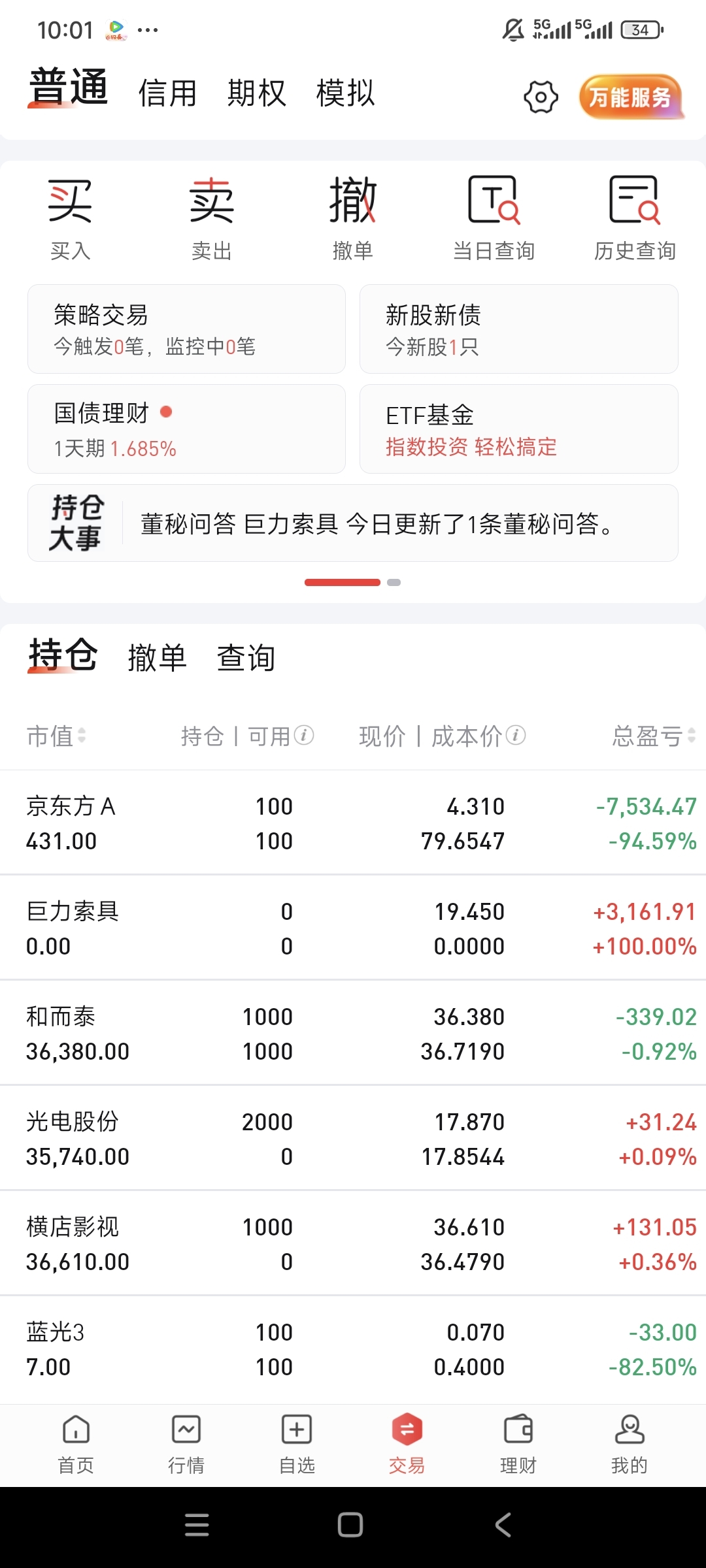 昨天巨力跌停买的小赚今天横店在来一下看看
