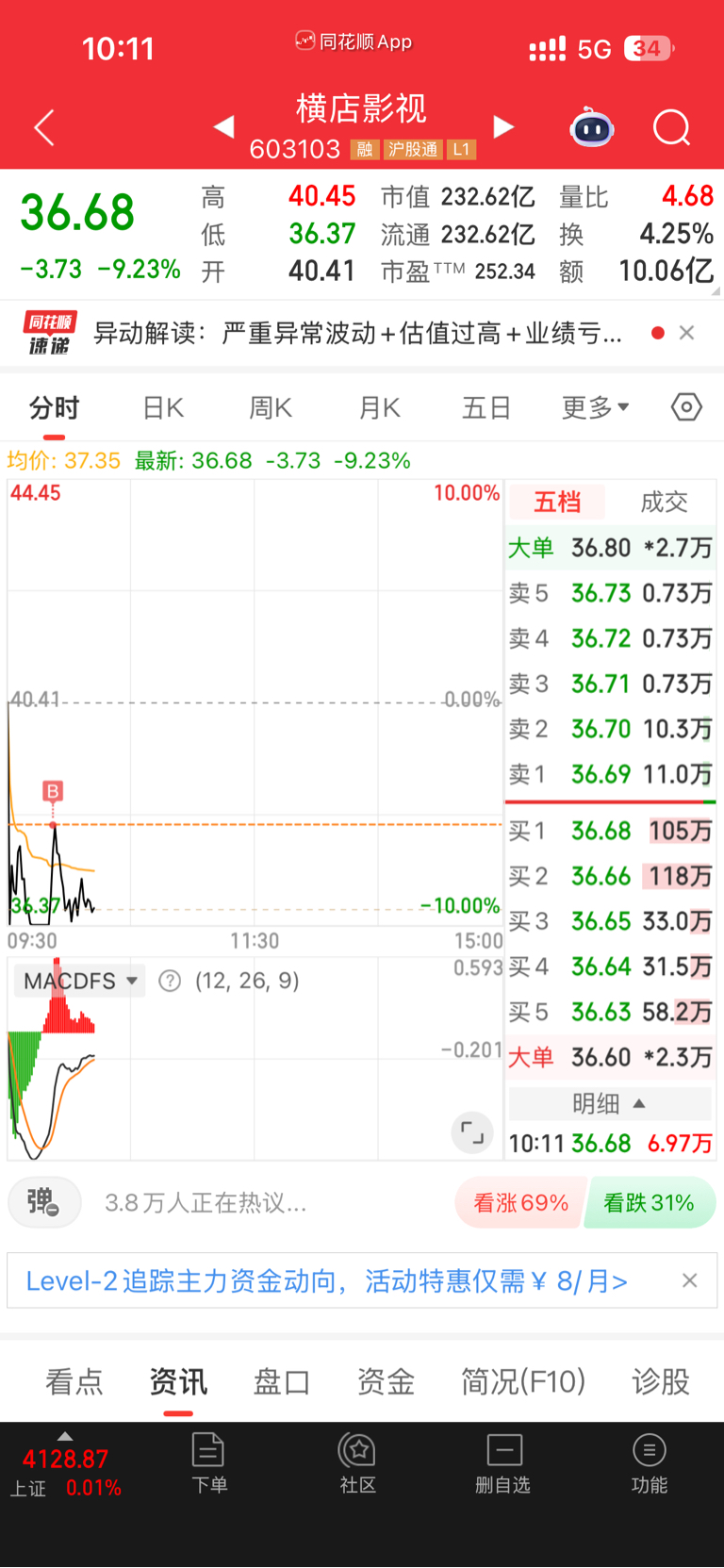 $横店影视(SH603103)$ 是怎么精准到最高点的
