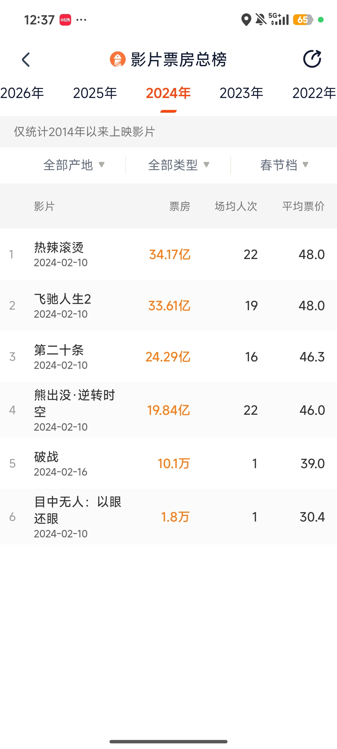节后基本也是这样的票房,只算春节档的话,而且今年没热辣滚烫那种小妞片我还有30个