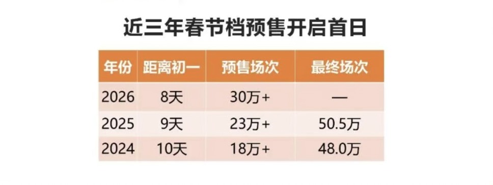 受片长影响2026年预售场次实现增长(图源:灯塔专业版)
