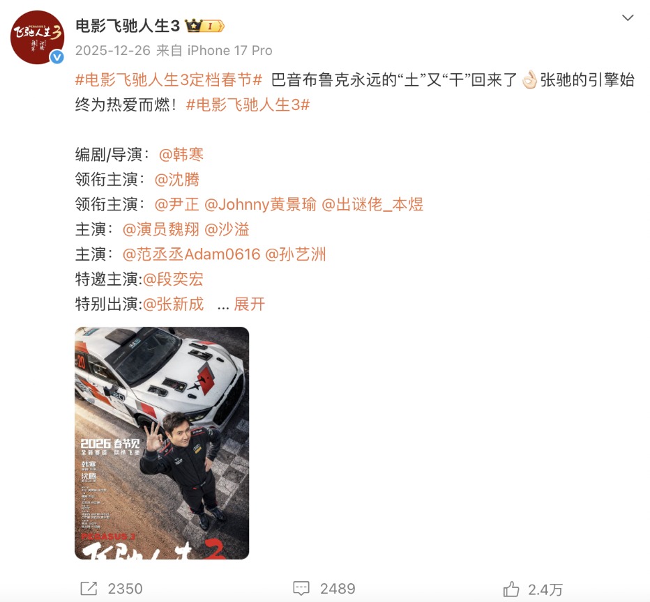 《飞驰人生3》最早宣布定档(图源:@电影飞驰人生3)