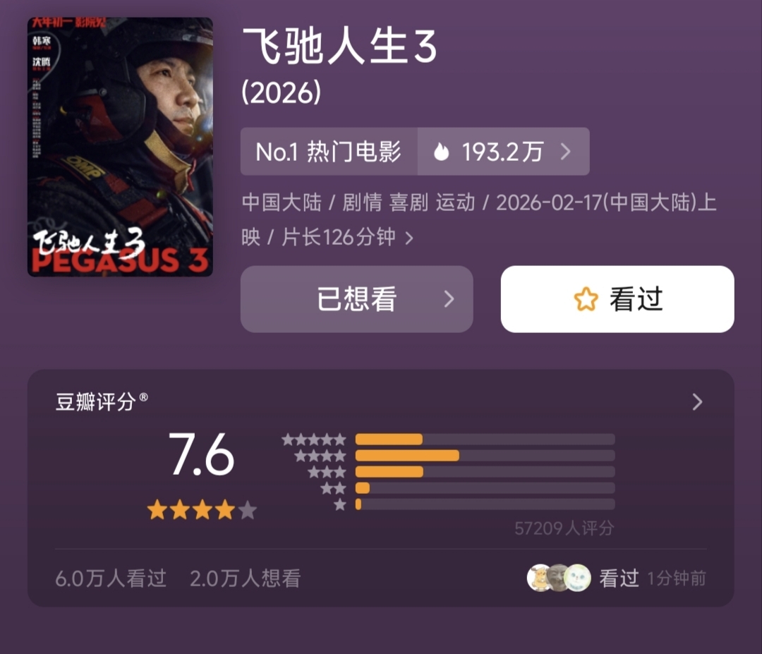 $横店影视(SH603103)$ 最新豆瓣评分出炉