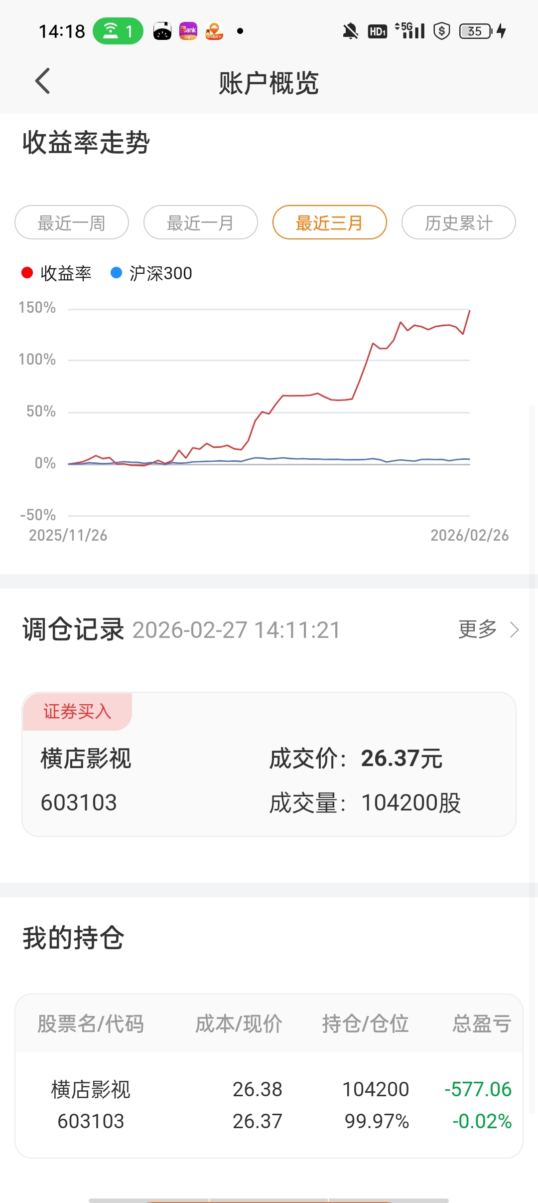 $横店影视(SH603103)$ 实盘交易:卖出掌阅科技,买入横店影视。
