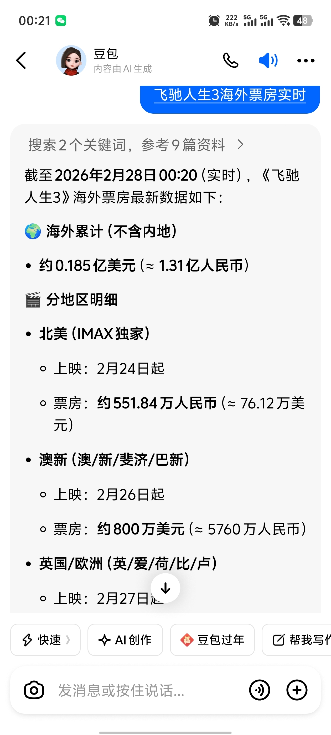 飞驰人生海外票房爆了,英国欧洲上映一天五千万,澳新二天五千万,澳门2850万,北