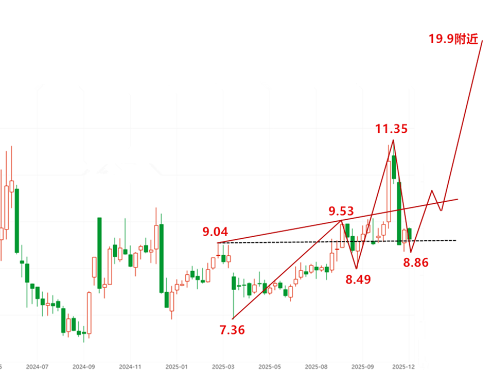 4、小芯开启主升,很可能早于小清和小山。主升开启之后,很可能会在上轨附近稍作震荡调整,消化掉下方的获利盘之后,继续加速向上;在15附近和19.9附近很可能要调整一下,随后继续向上拓展。主升第一阶段高点,预期29至30附近,随即见顶调整!