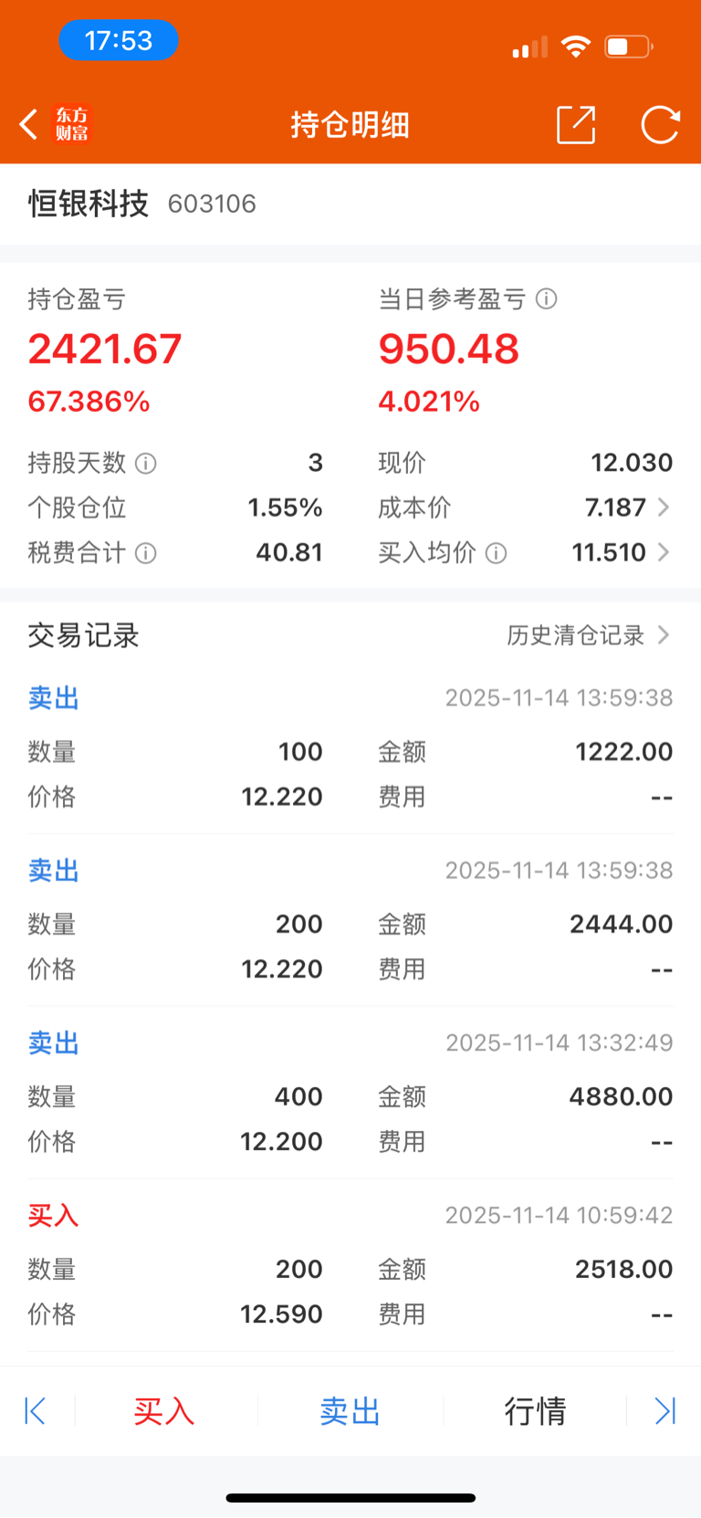$恒银科技(SH603106)$ 小资金在股市搬砖! 这票留了500股 。 随便主力怎么折腾了!已经立于不败之地