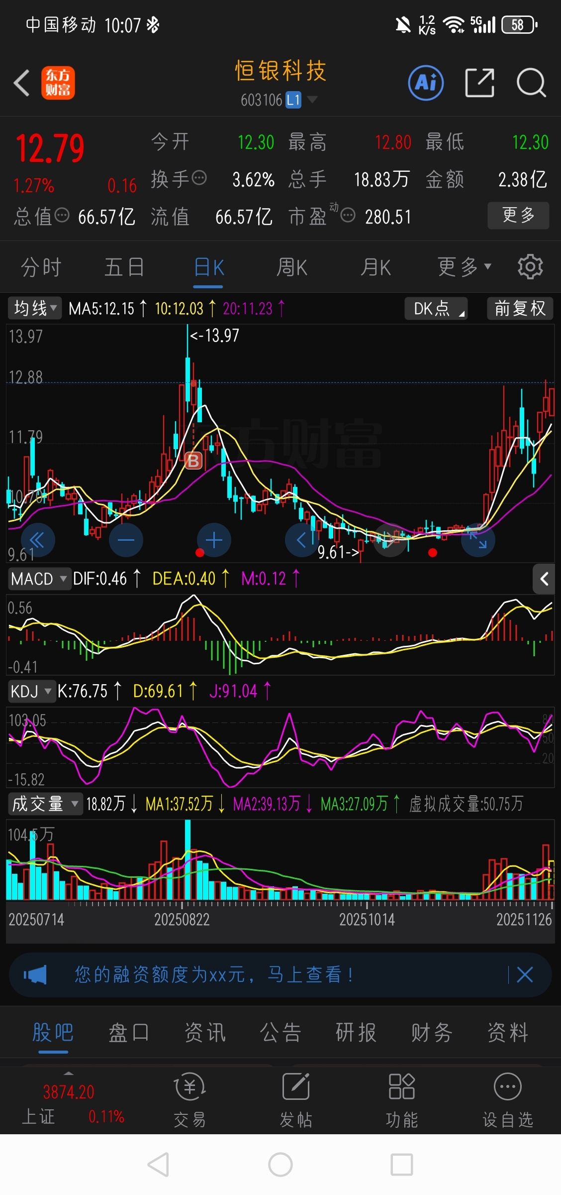 $恒银科技(SH603106)$ 买了就是为了回本!