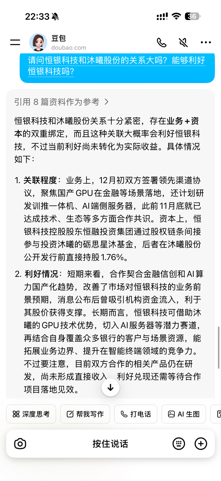 $恒银科技(SH603106)$ 问豆包了,因为没有中签,明天打算买点这个货,找了几个关联的