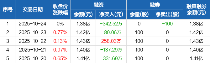 上海汽配:融资净偿还342.52万元,融资余额1.38亿元(10-24)