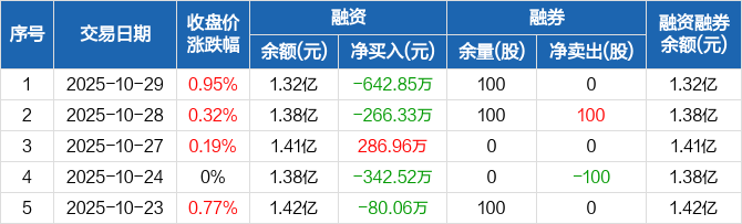 上海汽配:融资净偿还642.85万元,融资余额1.32亿元(10-29)