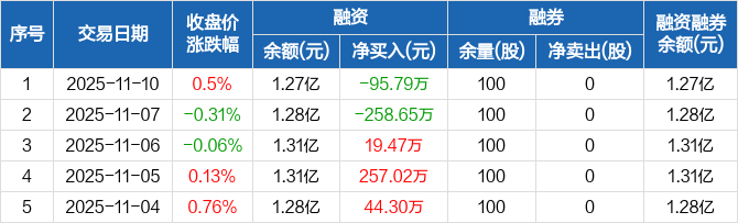 上海汽配:融资净偿还95.79万元,融资余额1.27亿元(11-10)