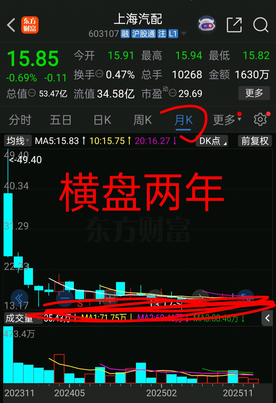 突然看见这个是汽车零部件板块走势最差的一个公司,这两年大盘2600上涨到4000上涨70%。汽车零部件板块2500到5000翻倍。上海汽配横盘两年多一直没上涨,实控人还是上海政府,所谓的央,国,企,改,革。嘿嘿