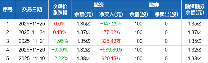上海汽配:融资净偿还147.25万元,融资余额1.35亿元(11-25)