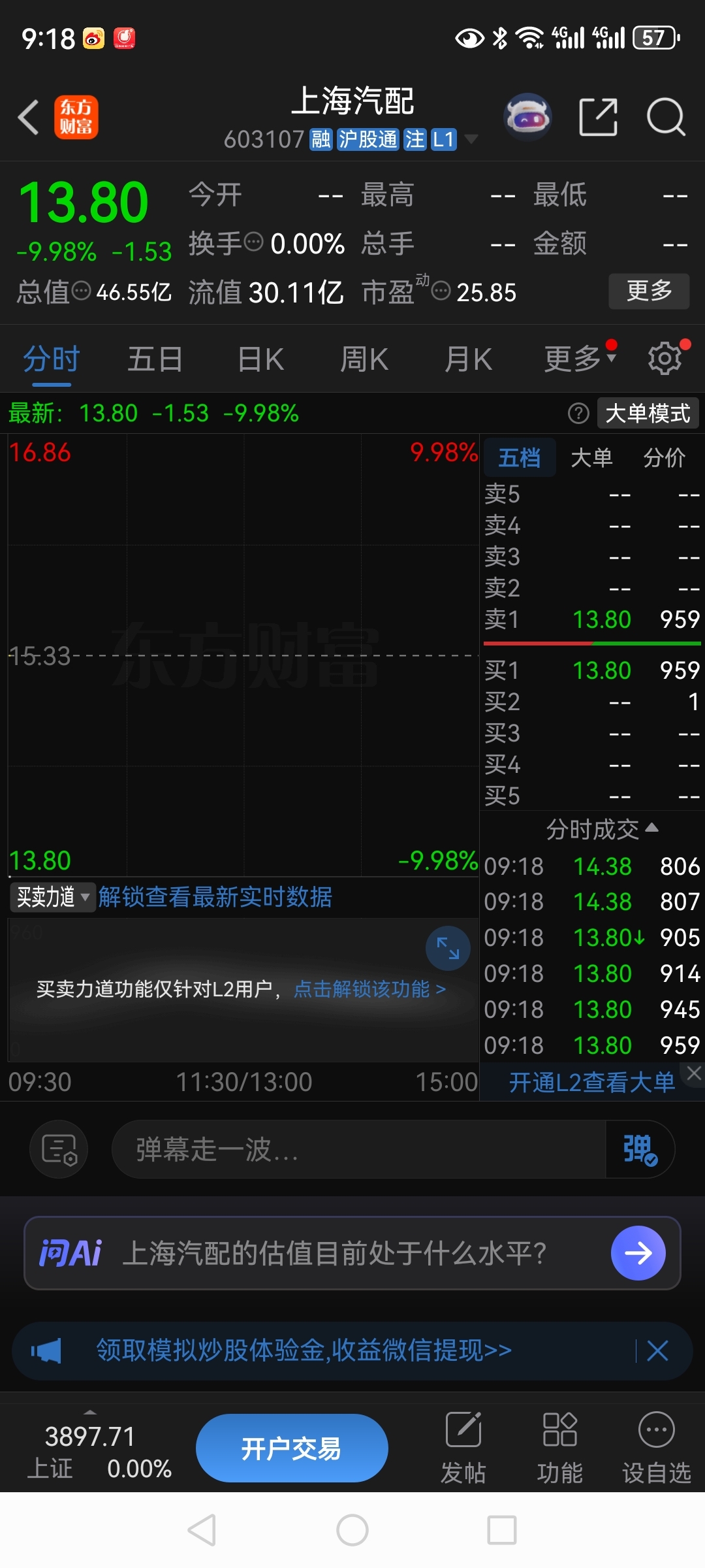$上海汽配(SH603107)$ 直接砸到跌停也好,无人气无量无换手