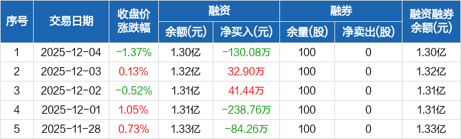 上海汽配:融资净偿还130.08万元,融资余额1.3亿元(12-04)