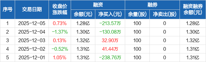 上海汽配:融资净偿还213.57万元,融资余额1.28亿元(12-05)