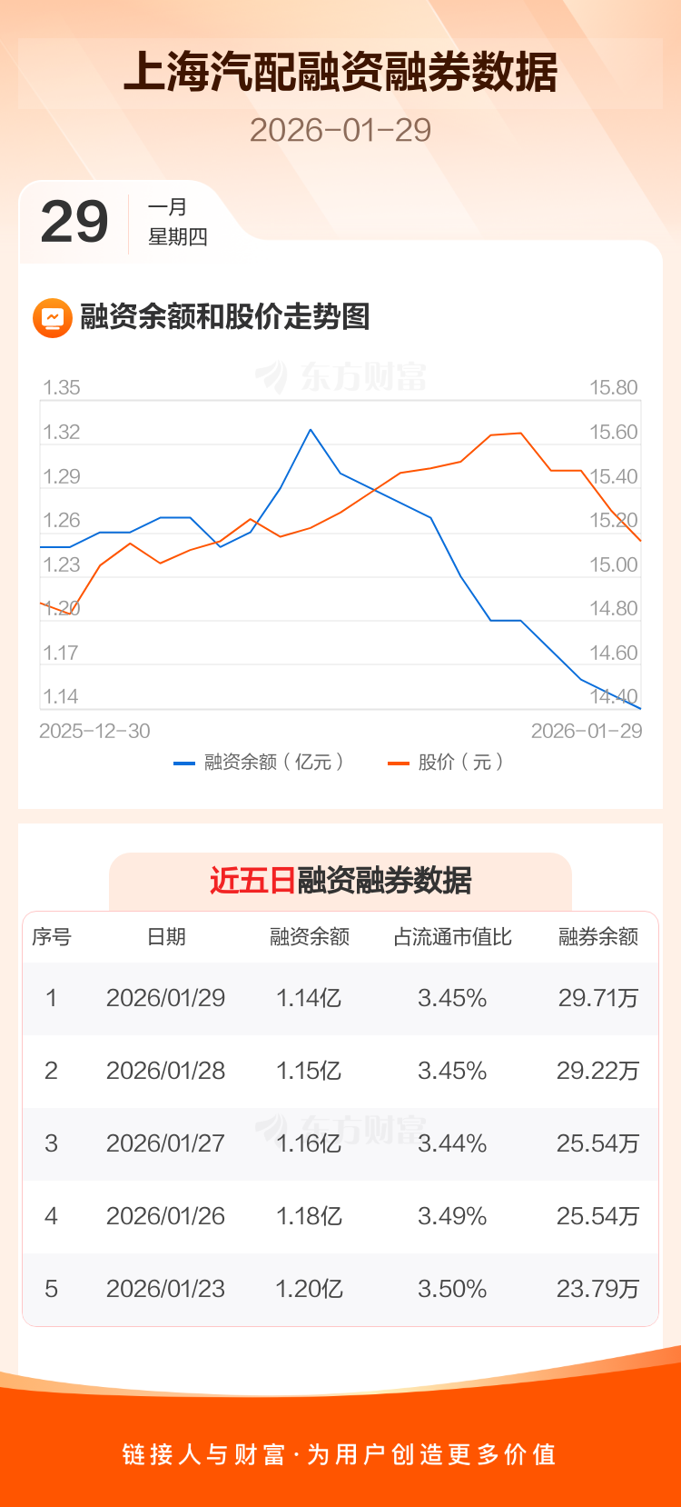 交易所最新数据显示,上海汽配于2026年1月29日获融资买入564.65万元,融资偿还670.59万元,当日融资净偿还105.94万元。目前,该股融资余额1.14亿,占流通市值比例为3.45%。