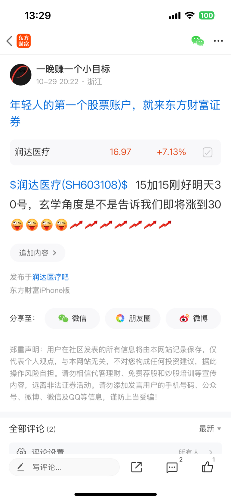 温馨提示: 1.根据《证券法》规定,禁止编造、传播虚假信息或者误导性信息,扰乱证券市场;2.用户在本社区发表的所有资料、言论等仅代表个人观点,与本网站立场无关,不对您构成任何投资建议。用户应基于自己的独立判断,自行决定证券投资并承担相应风险。《东方财富社区管理规定》