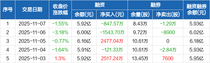 润达医疗:融资净偿还847.57万元,融资余额5.92亿元(11-07)