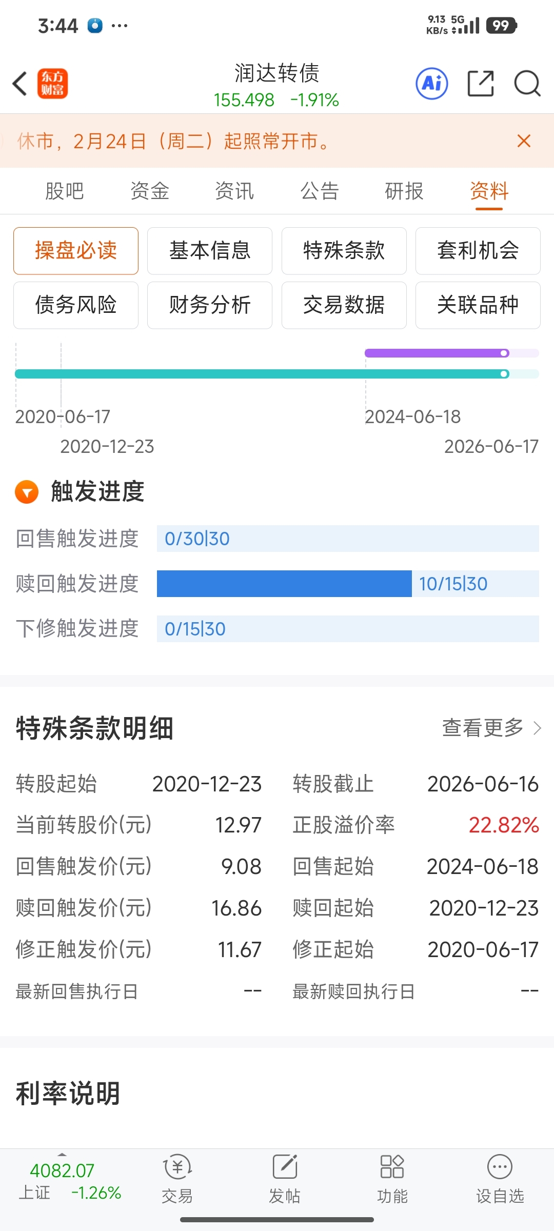 转债要赎回吗?正股价格要拉到16.86以上才行,还要持续5天