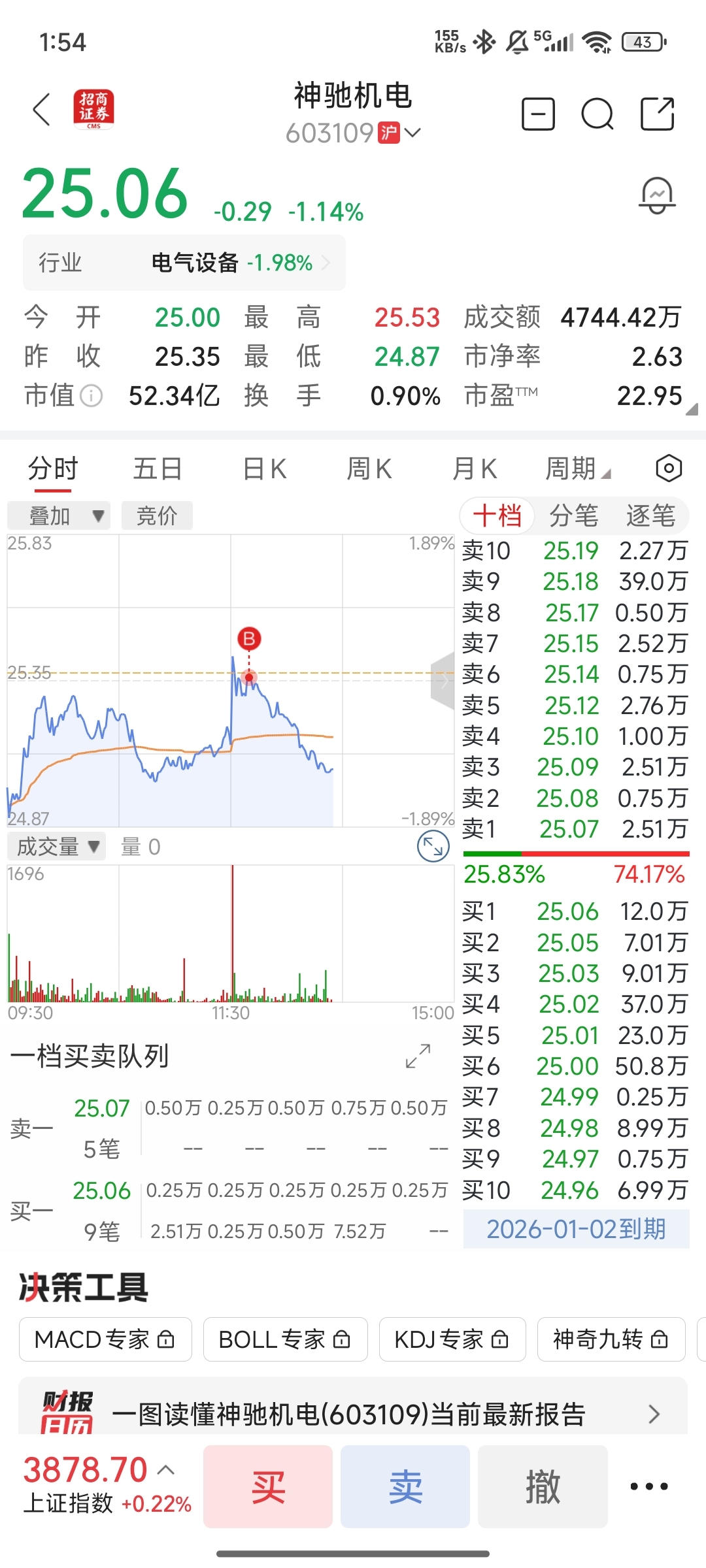 $神驰机电(SH603109)$ 哎,看了陈小群的微博买的,挂山顶了。