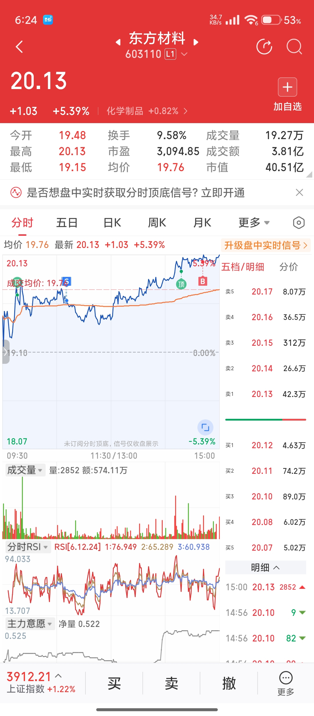 $东方材料(SH603110)$ 眼看不对劲还好买回来了