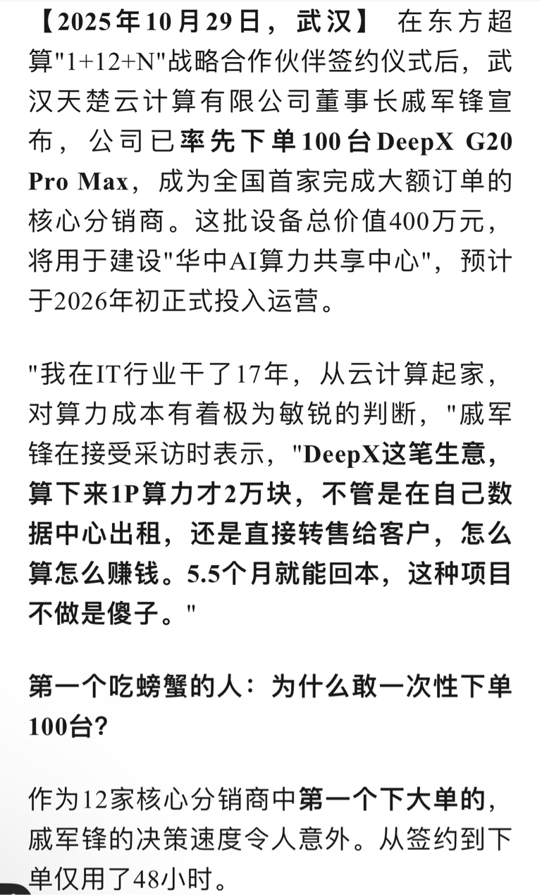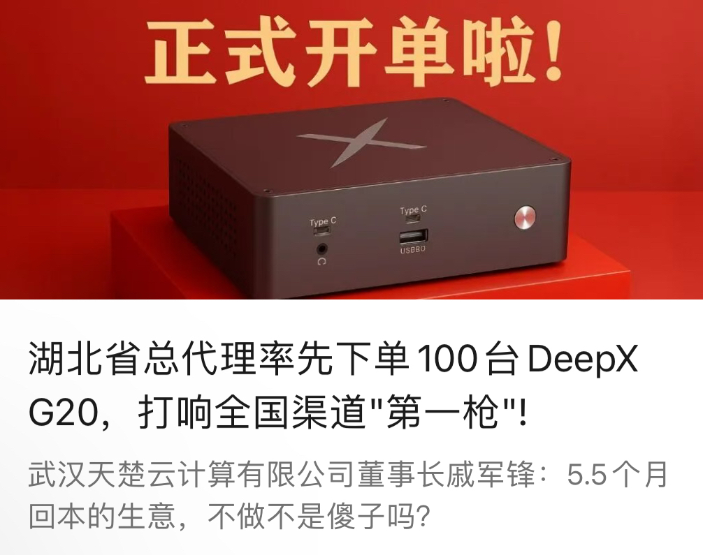 湖北省总代理率先下单100台DeepXG20,打响全国渠道"第一枪"!"1P算力