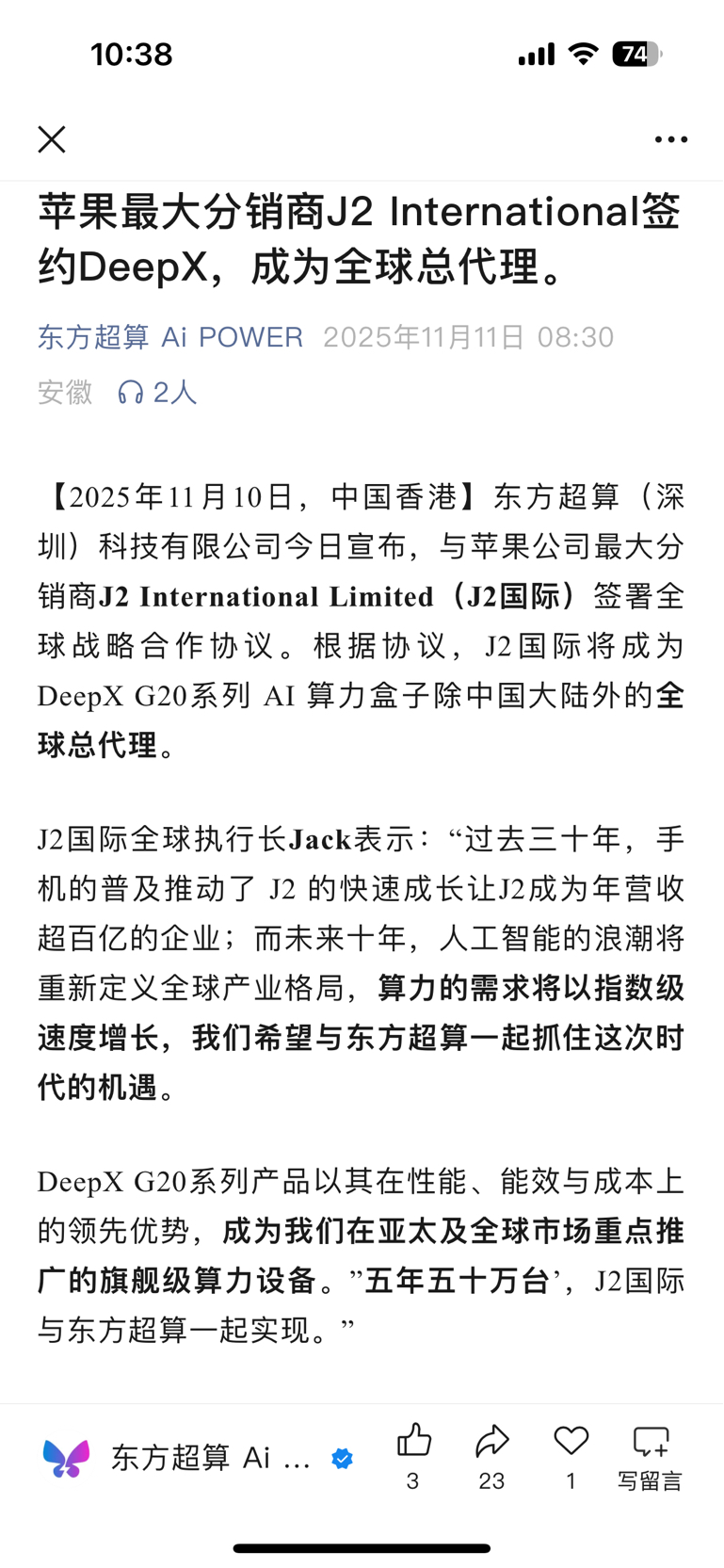 苹果最大分销商J2International签约DeepX,成为全球总代理