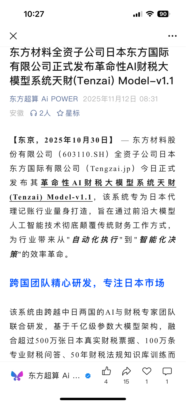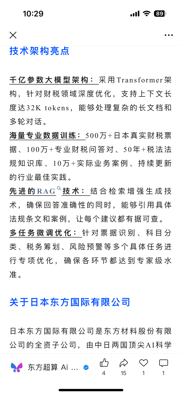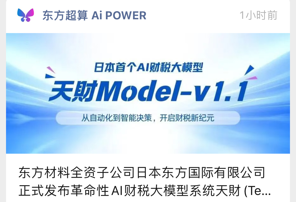 【AI财税大模型】东方材料全资子公司日本东方国际有限公司正式发布革命性AI财税大
