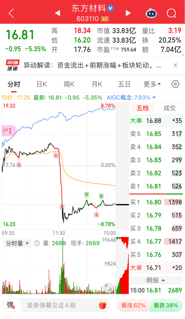 $东方材料(SH603110)$  胜通连板前也来了这么一个断头铡