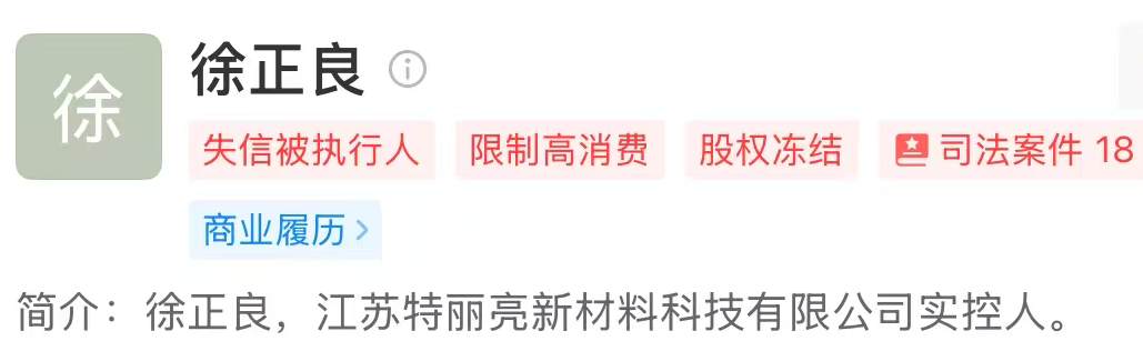 更令人担忧的是新股东的背景风险。相关数据显示,特丽亮法定代表人徐正良近三年内存在被列为 "失信被执行人"" 限制消费 " 等情形。具体看,江苏省苏州市中级人民法院于 2023 年出具《限制消费令》,将徐正良列为限制消费人员;苏州工业园区人民法院则于 2024 年将其列为失信被执行人及限制消费人员。