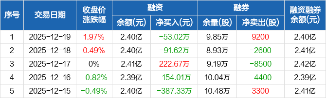 金能科技:融资净偿还53.02万元,融资余额2.4亿元(12-19)