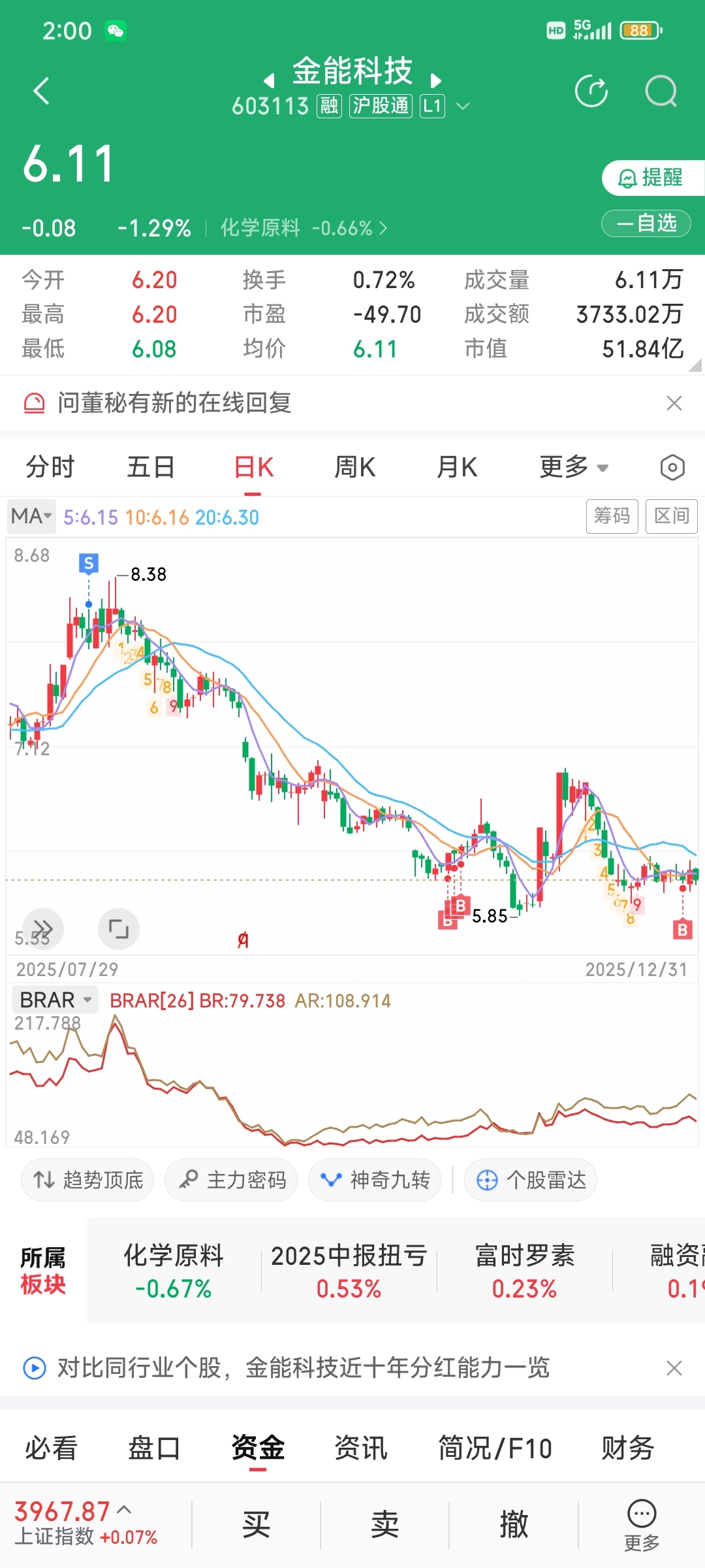 $金能科技(SH603113)$ 兄弟们我又回来啦,主力你有本事下跌呀