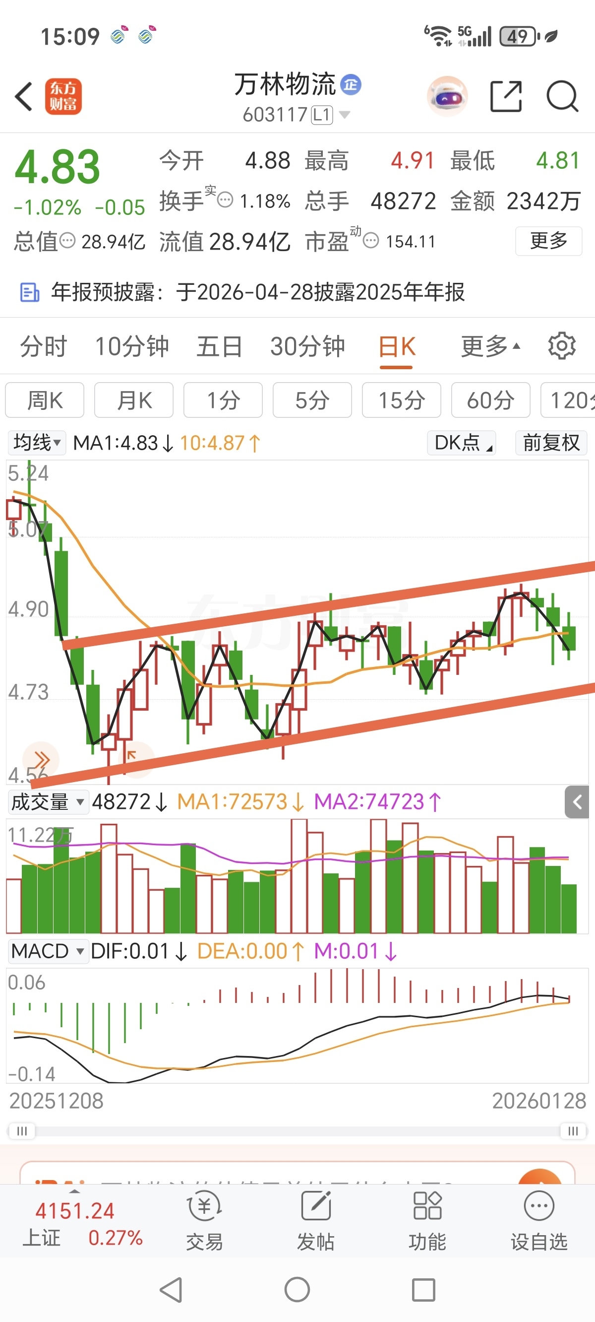 $万林物流(SH603117)$ 这不是短期上行吗?