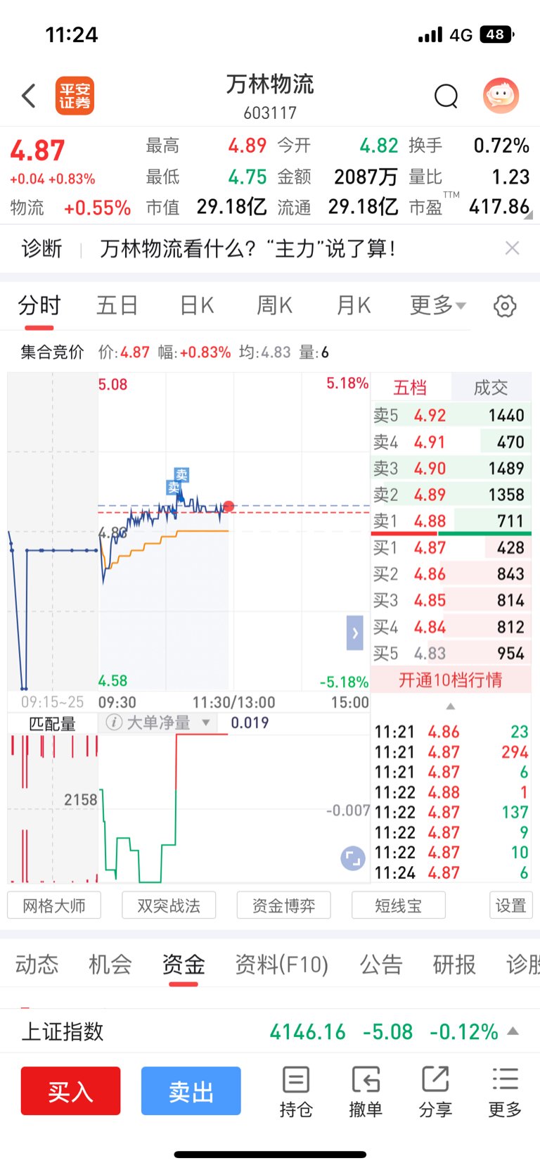 $万林物流(SH603117)$ 控制仓位减仓,浪费行情了