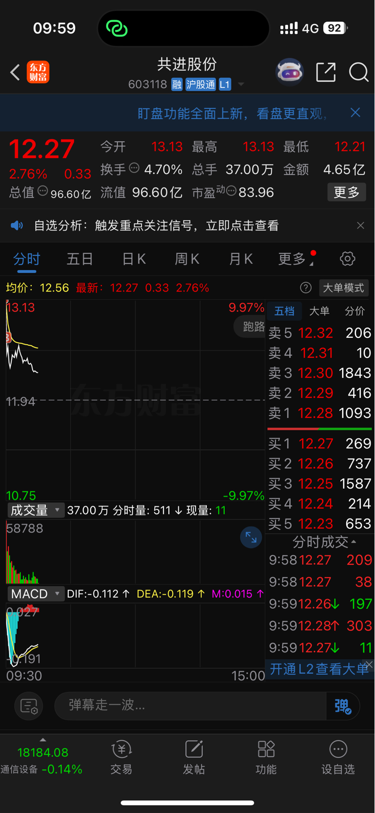 $共进股份(SH603118)$ 我哦、昨晚挂完单早上居然睡过头了、准备今天亏20厘米明天走人