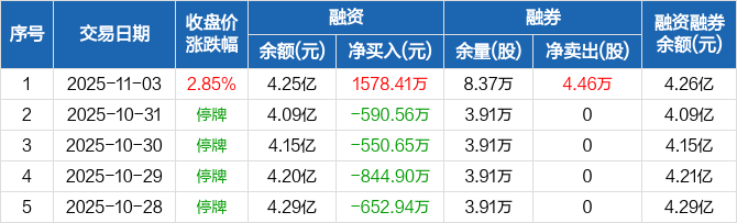 共进股份:融资净买入1578.41万元,融资余额4.25亿元(11-03)