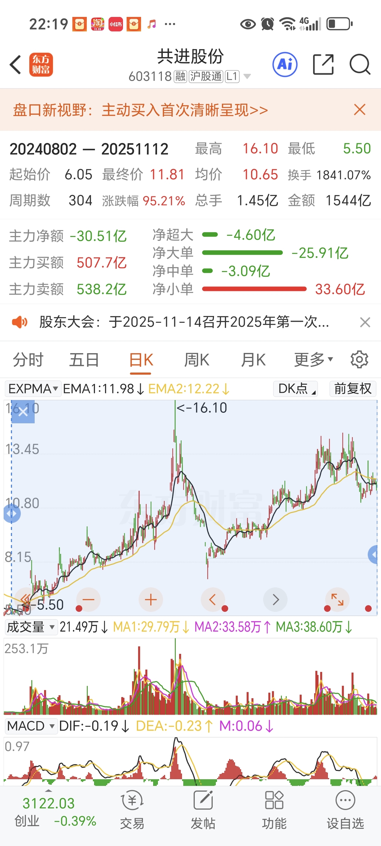 低点到现在涨了一倍,你以为是底了,其实还在山腰上,以我对共进勾庄的了解,这波阴跌