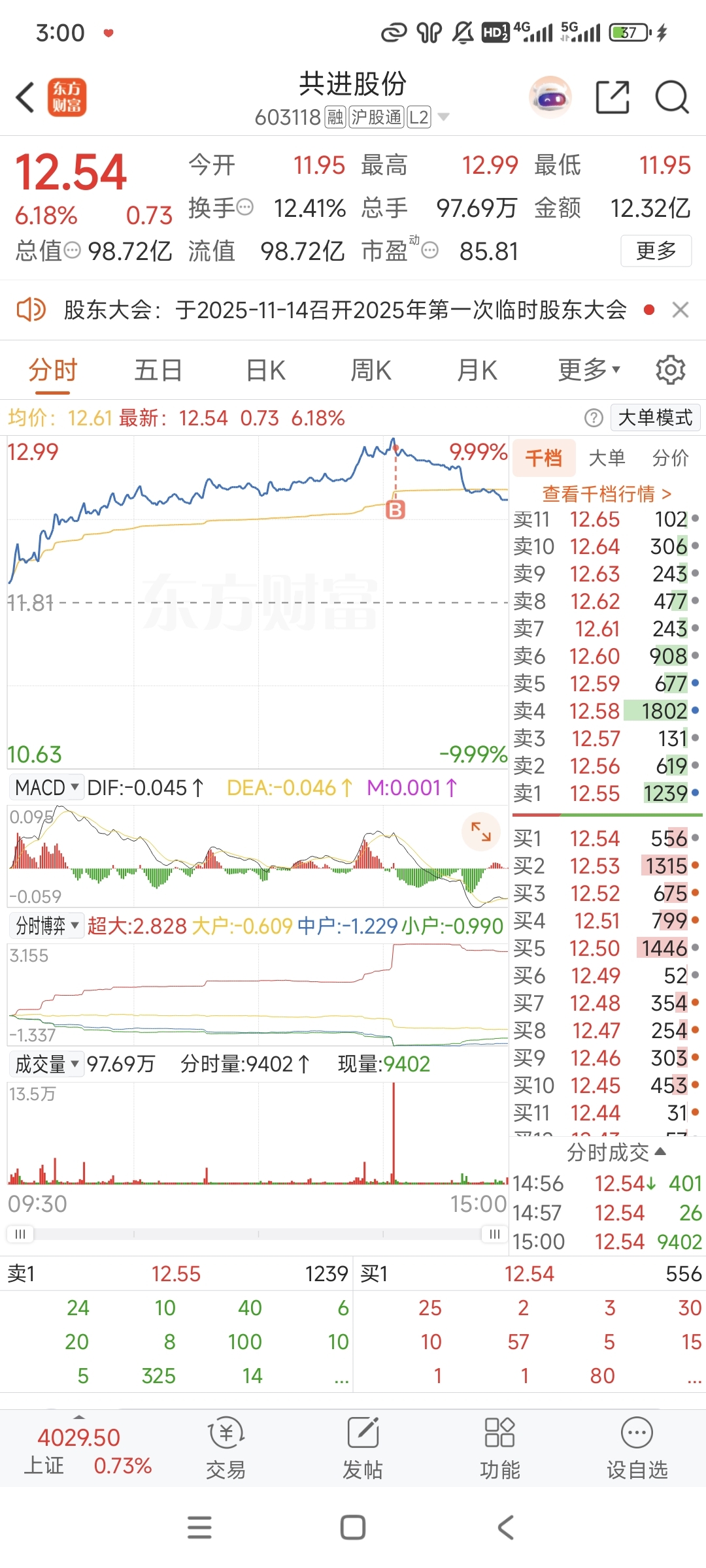 $共进股份(SH603118)$ 这个主力太脏了,涨停下面垫单2个万手不主动吃,然后等着量化触发一下子8万手吃完,然后瞬间砸盘炸板撤掉两个万手单,面对这种股票家人们直接拉黑就好了,叫主力去自己玩,等下我直接挂跌停出,永远拉黑这种股!