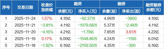 共进股份:连续5日融资净偿还累计2.28亿元(11-24)