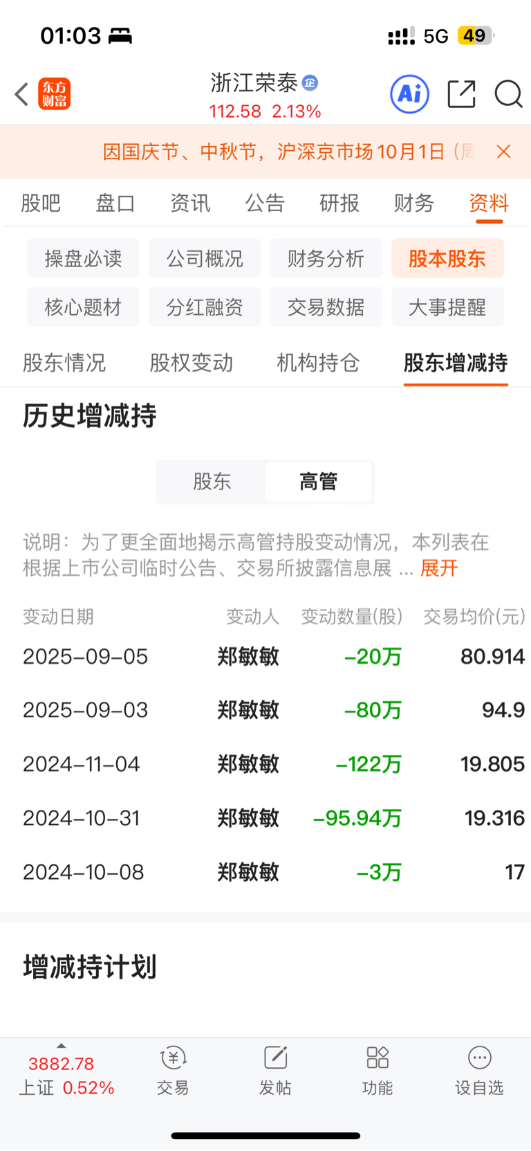 $浙江荣泰(SH603119)$ 这个高管有那么多股咋一直抛售