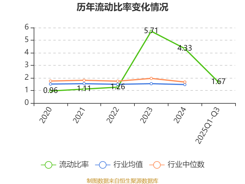 2025年前三季度,公司流动比率为1.67,速动比率为1.3。