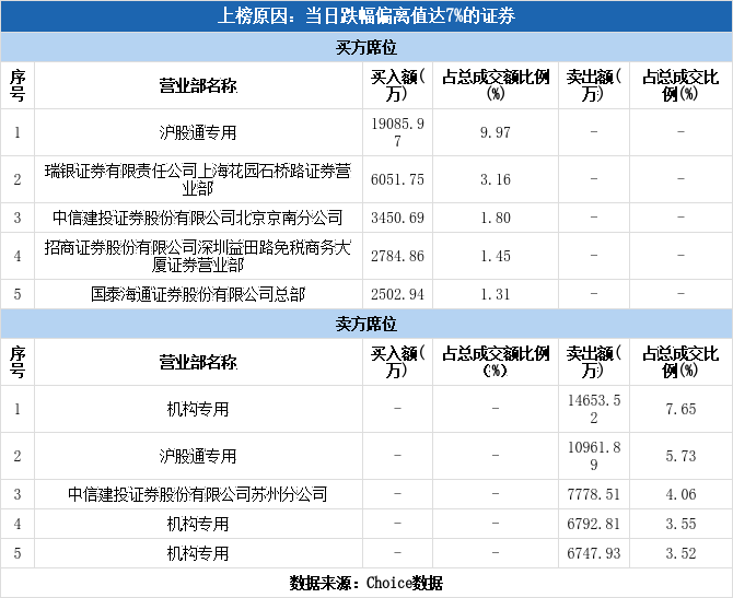 多主力现身龙虎榜,浙江荣泰跌停(11-10)