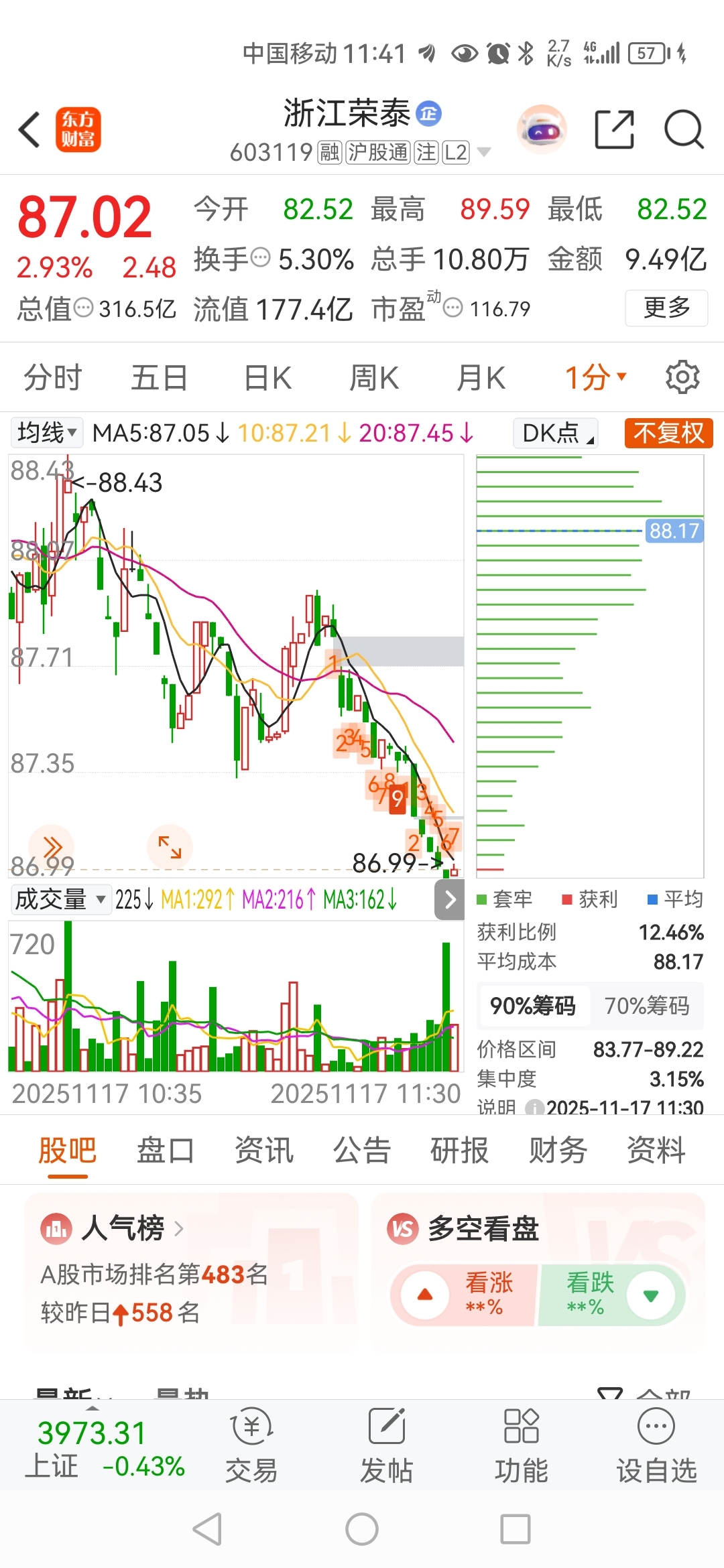 $浙江荣泰(SH603119)$ 追高一个套一个