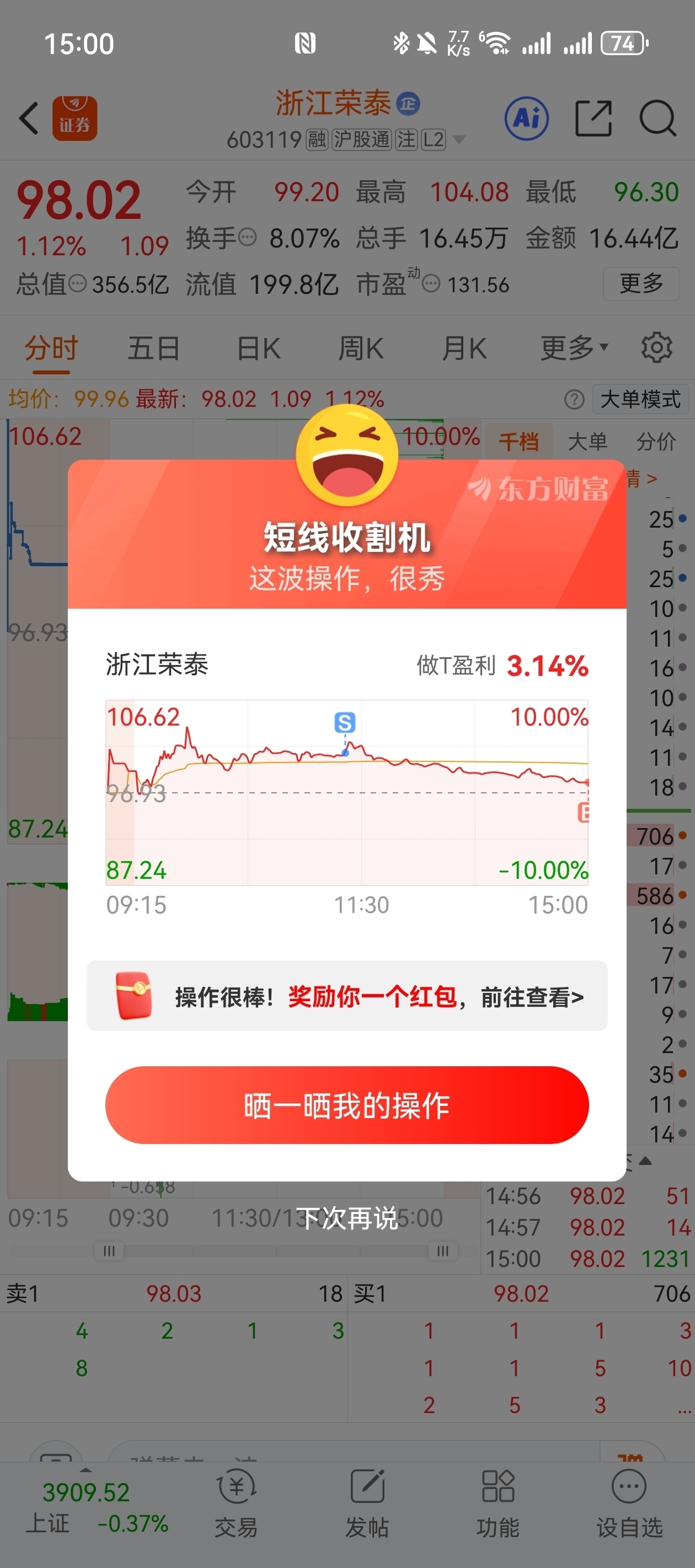 $浙江荣泰(SH603119)$ 希望明天别埋我哇