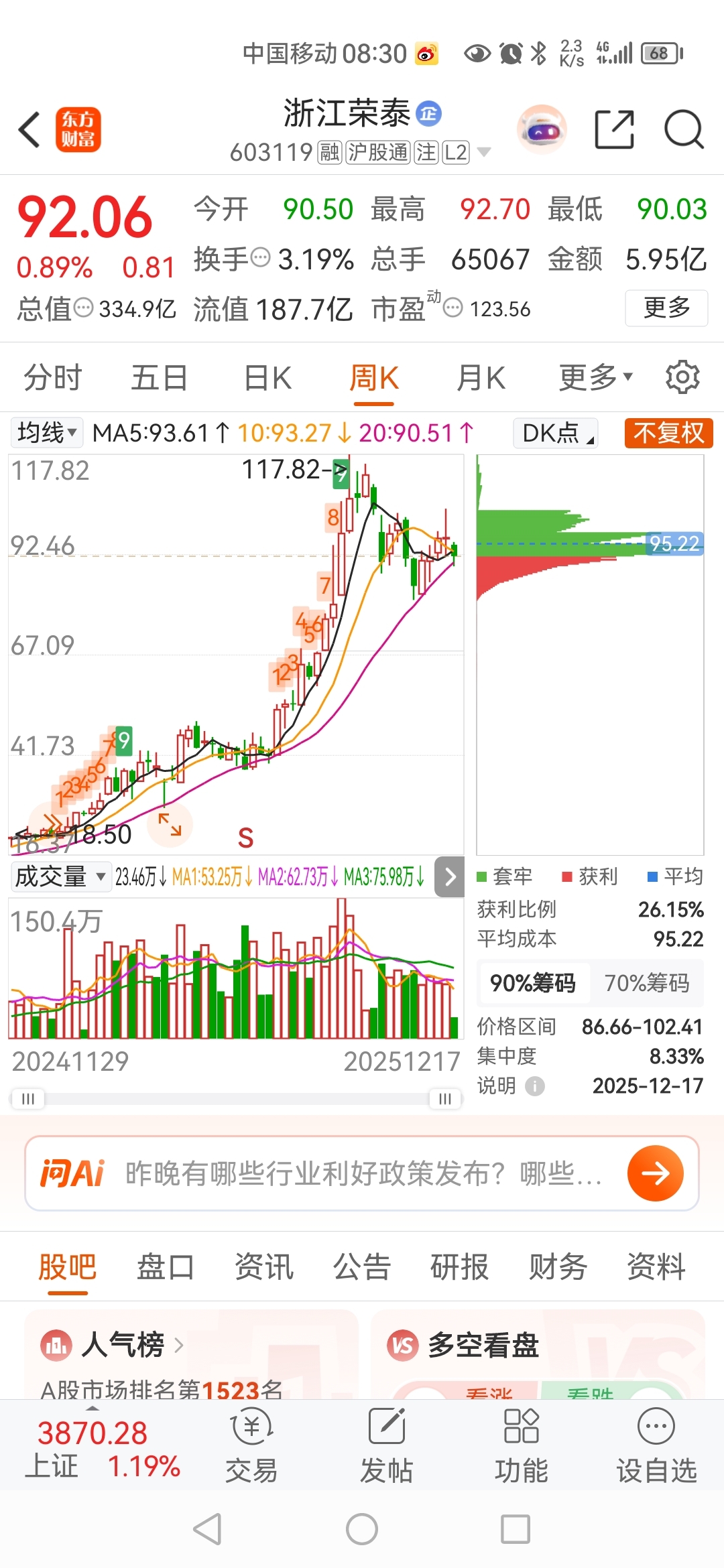 $浙江荣泰(SH603119)$ 下面的筹码好像没了
