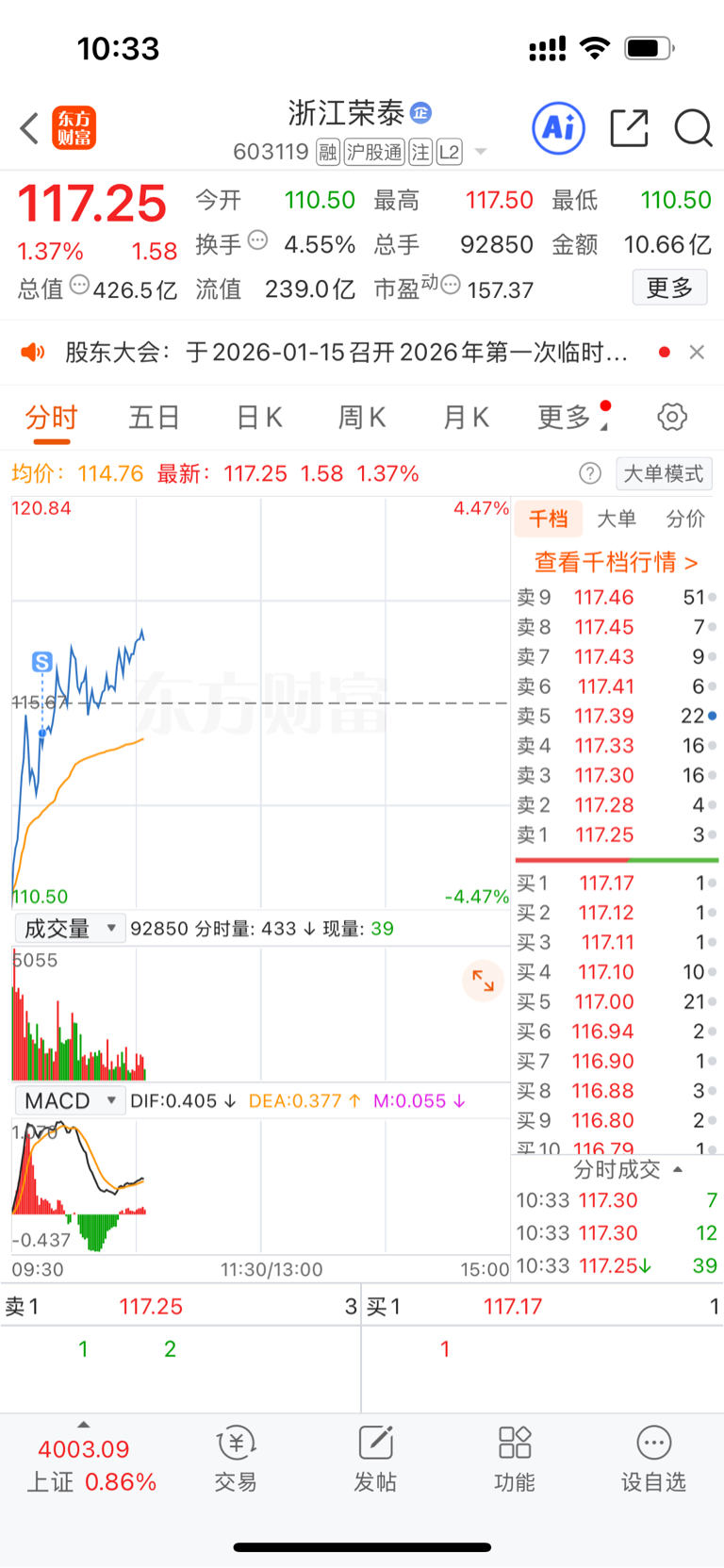 $浙江荣泰(SH603119)$ 给我洗出去了